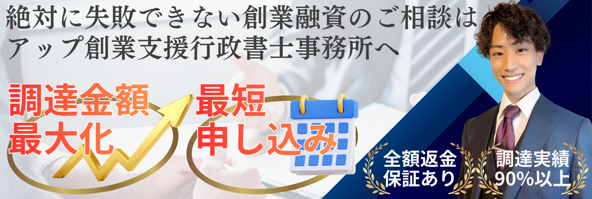 創業融資、許認可、会社設立をまとめて支援する創業のワンストップ支援を展開している。